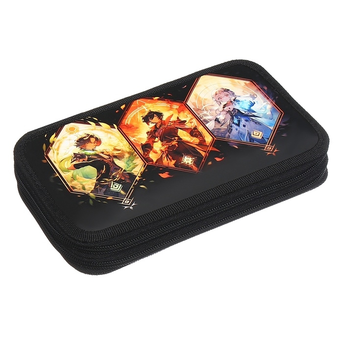 Пенал 3 секции, вкладка внутри, 140 х 210 х 40 мм, тканевый, Calligrata TOP Block "Аниме"