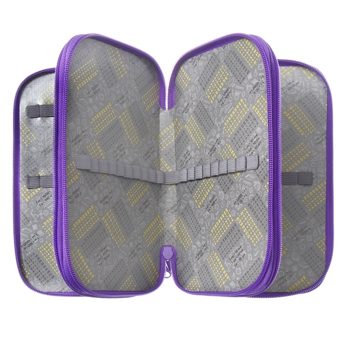 Пенал для школьных канцелярских принадлежностей с 3-мя отделениями. Увеличенный размер 125*205*55 мм (помещается карандаш с резинкой). Идеальное решение для первоклассника. Удобные молнии с трех сторон с металлическим бегунком, прочные резинки для предметов. Внутри пенала - цветная печать. Вмещает до 48 предметов. Материал снаружи - ламинированный картон с цветной печатью. Конструкция отличается износостойкостью и прочностью, поможет защитить канцелярские принадлежности от повреждений. Внутри пенала прочно пришиты резинки. Внутренняя часть пенала выполнена из картона с ламинацией. Поставляется без наполнения.