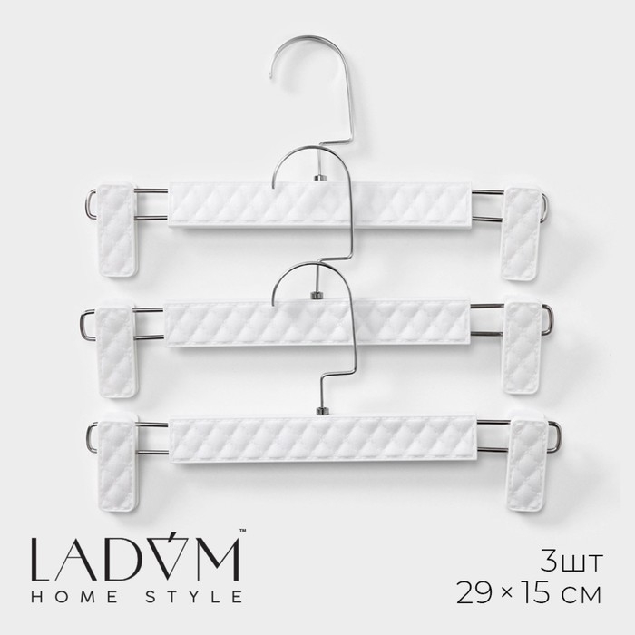 Вешалки для брюк и юбок LaDо́m Eliot, 29×15 см, 3 шт, с зажимами, цвет белый
