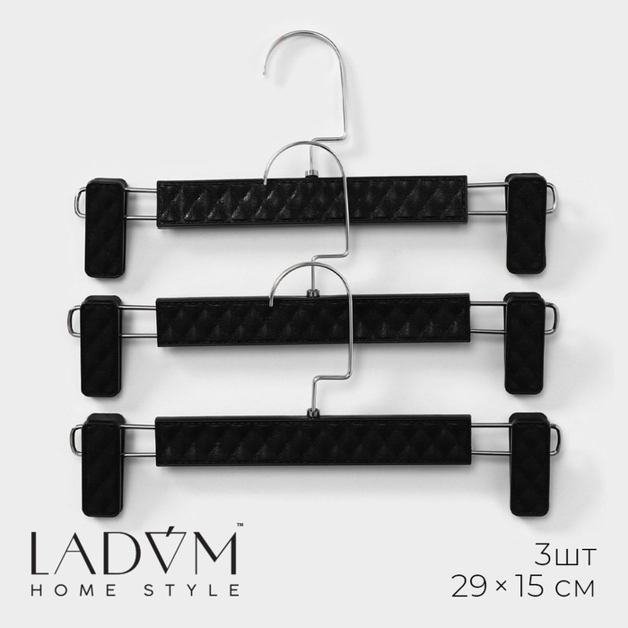 Вешалки для брюк и юбок LaDо́m Eliot, 29×15 см, 3 шт, с зажимами, цвет чёрный