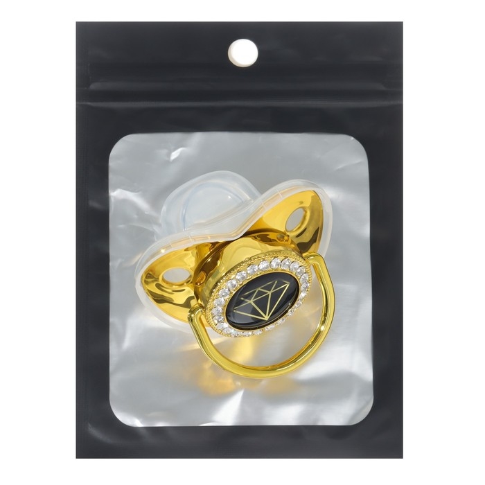 Соска - пустышка силиконовая ортодонтическая «Бриллиант», от 12 мес., с колпачком, цвет золотой/черный, стразы