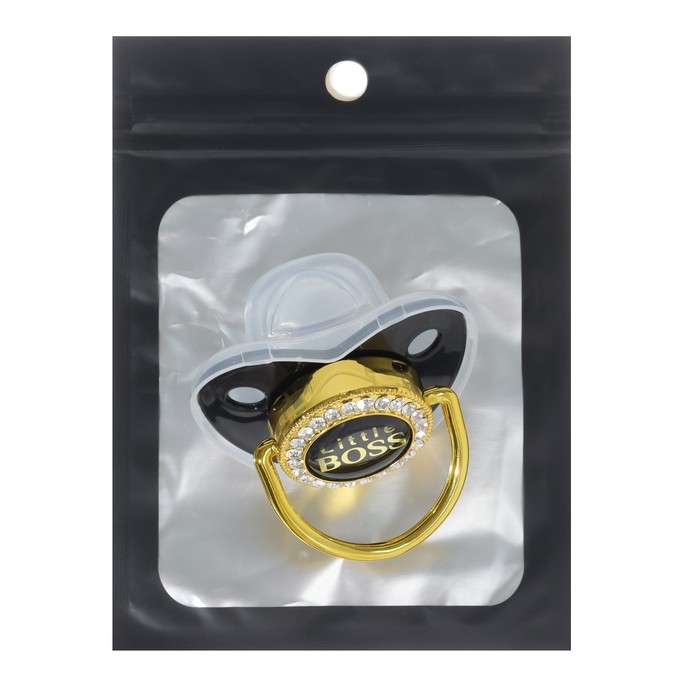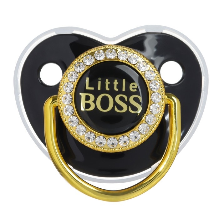 Соска - пустышка силиконовая ортодонтическая «Маленький БОСС», от 12 мес., с колпачком, цвет черный/золото, стразы