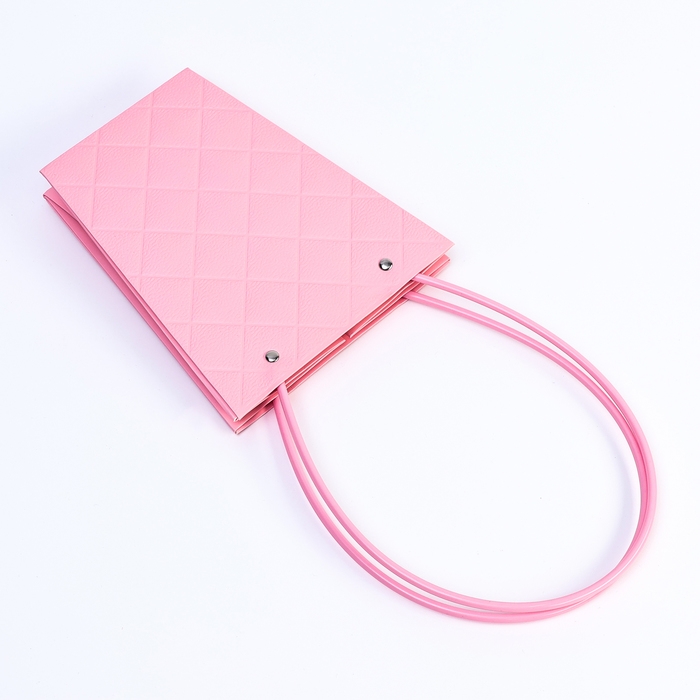 Сумка для цветов тиснение розовый влагостойкая, 17x17-11.5x11.5-20 см
