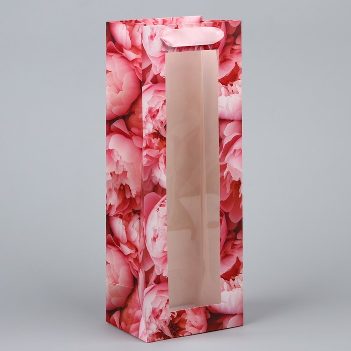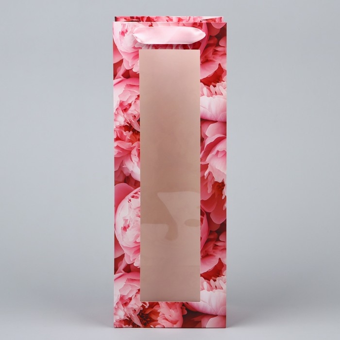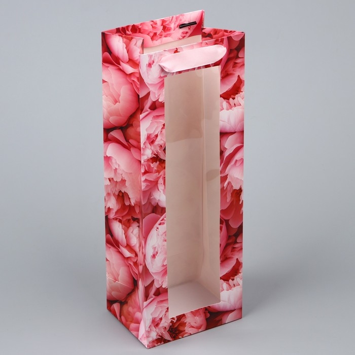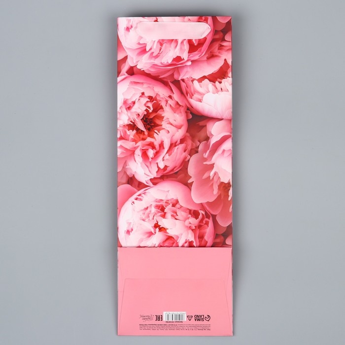 Пакет подарочный под бутылку, упаковка, «Цветы», 36 х 13 х 10 см