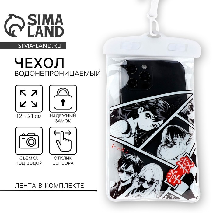 Чехол на телефон водонепроницаемый «Аниме», черно белое, 12 х 21 см