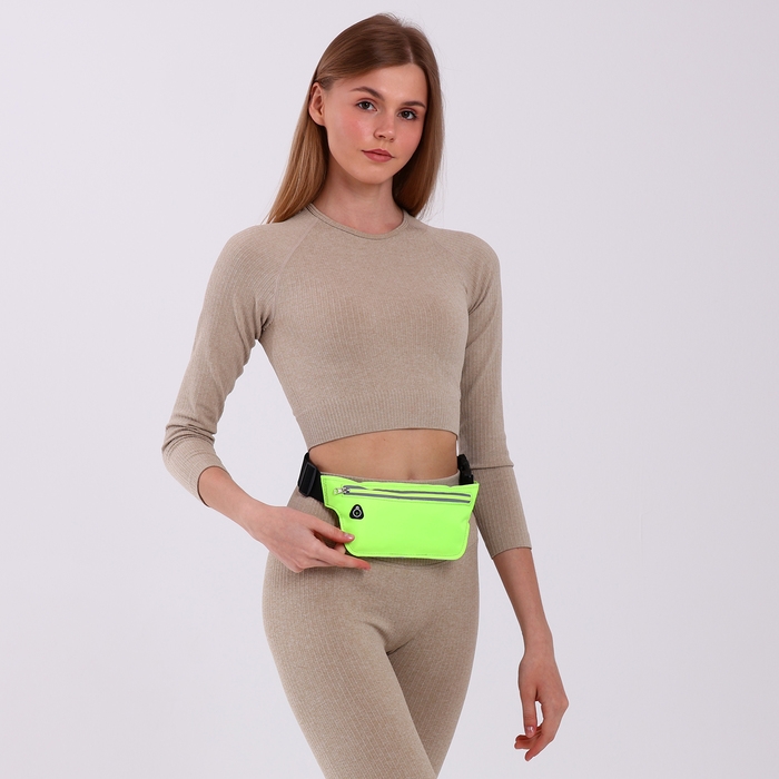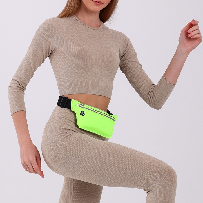 Поясная сумка на молнии, светоотражающие элементы, цвет зелёный