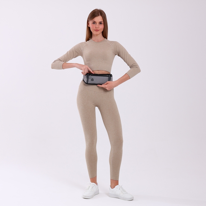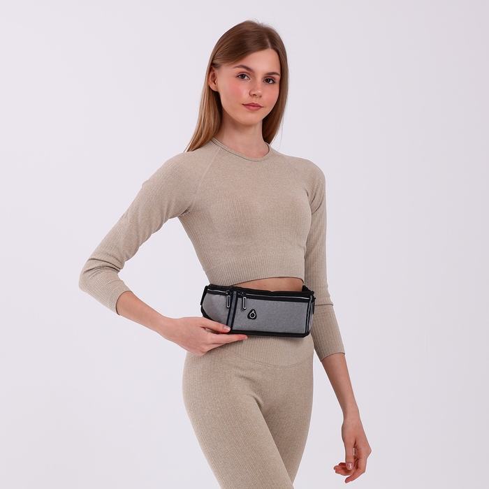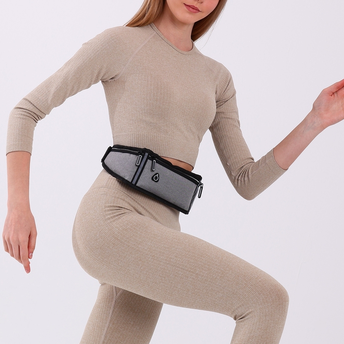 Поясная сумка на молнии, 3 отдела, цвет серый