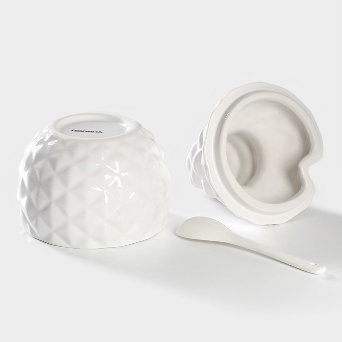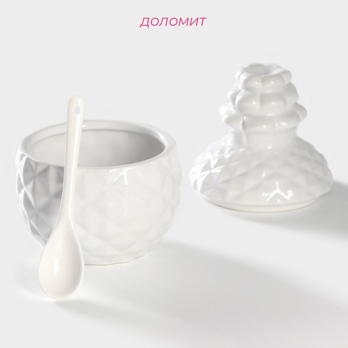 Банка для хранения сыпучих продуктов с ложкой Доляна «Ананас», 300 мл, 10×14,5 см, керамическая, цвет белый