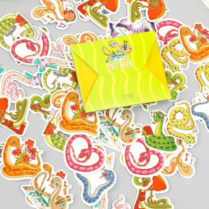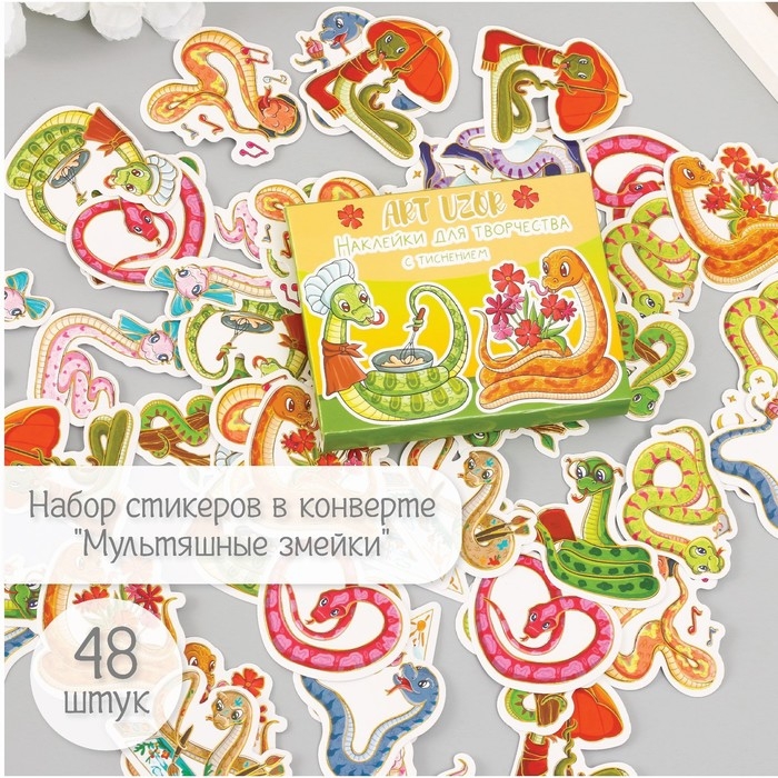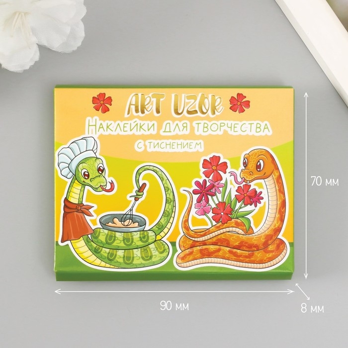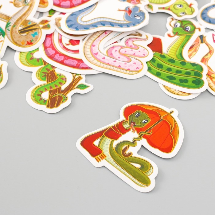 Наклейки для творчества "Мультяшные змейки" тиснение золото набор 48 шт 9х7х0,8 см