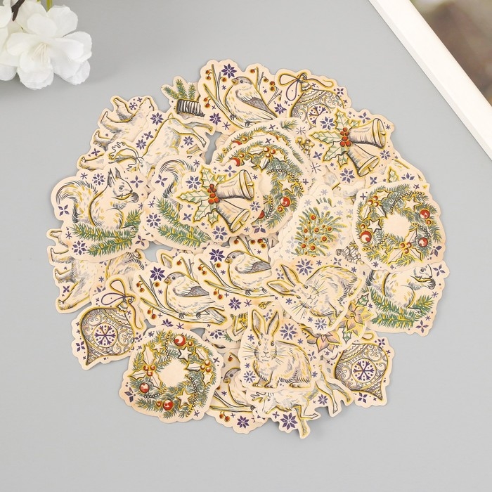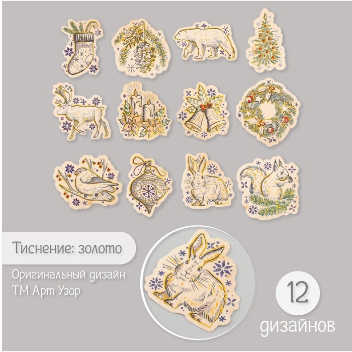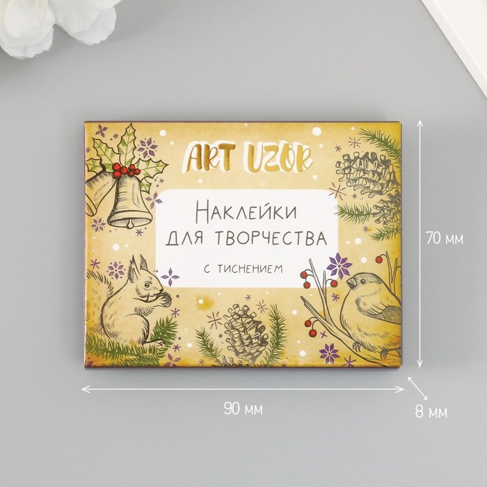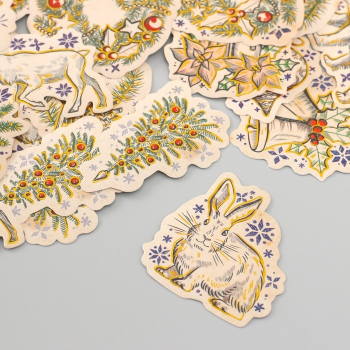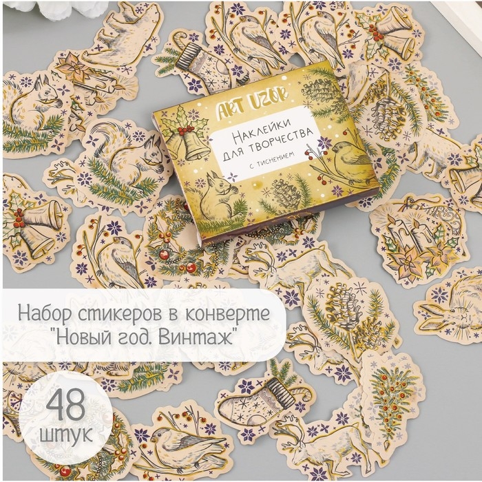 Наклейки для творчества "Новый год. Винтаж" тиснение золото набор 48 шт 9х7х0,8 см