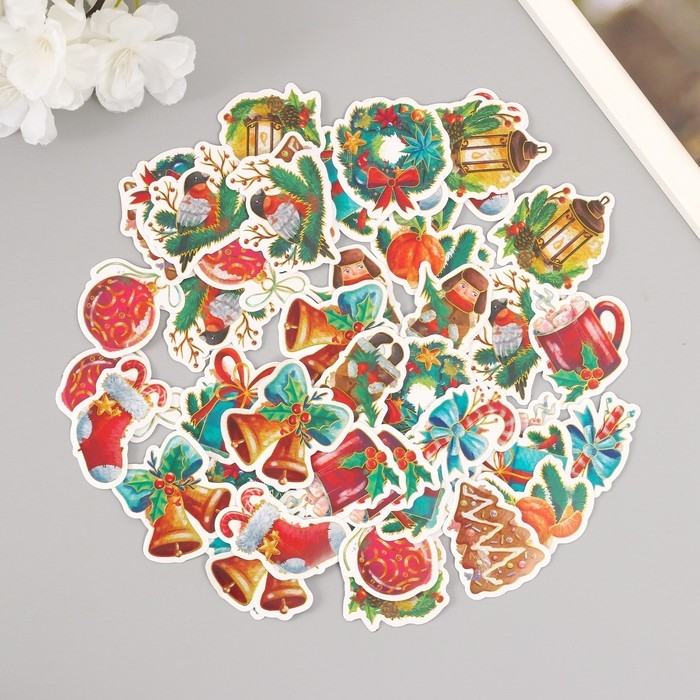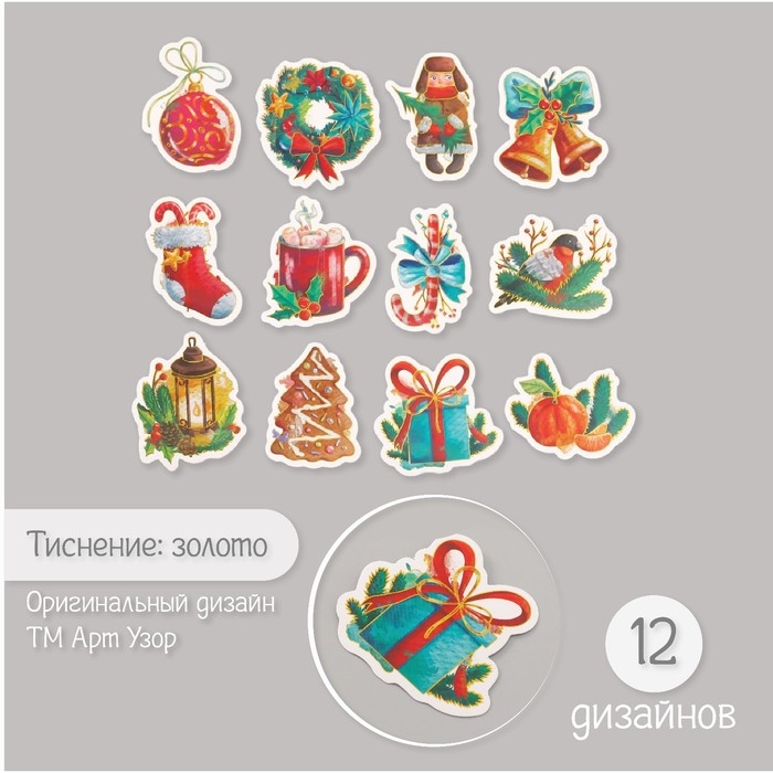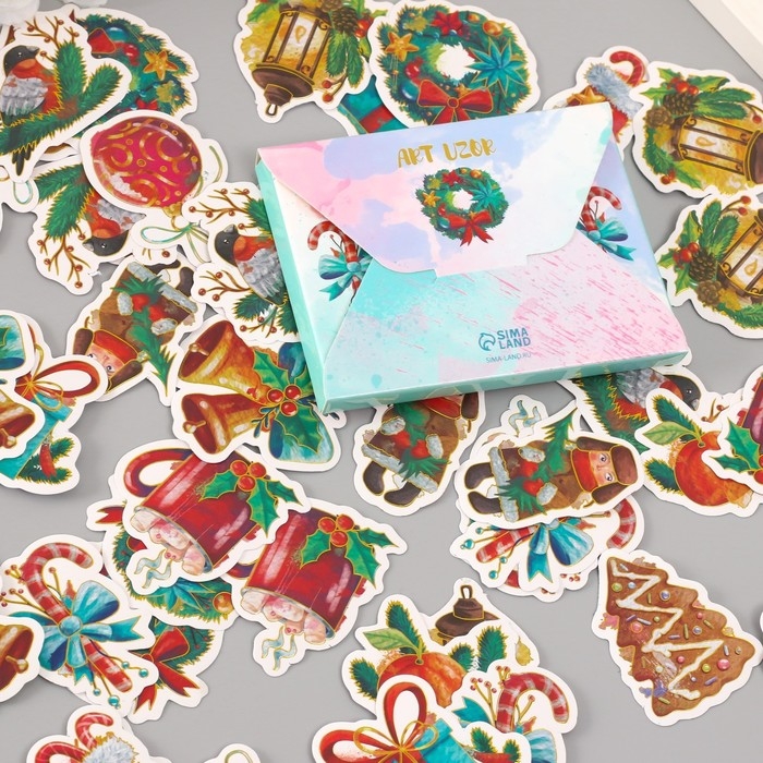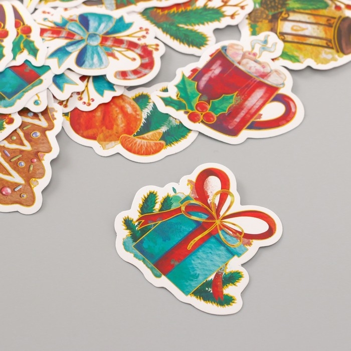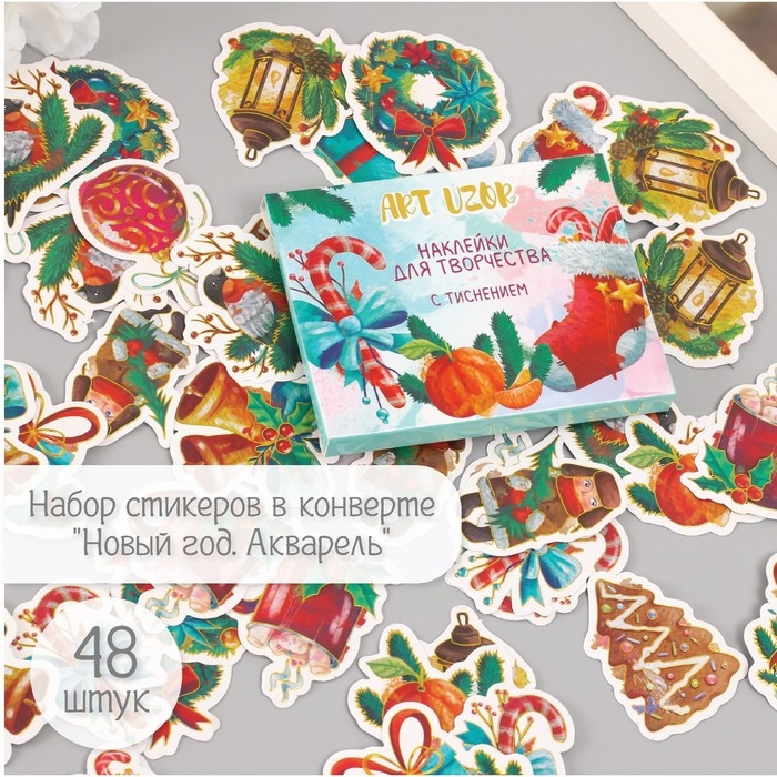 Наклейки для творчества "Новый год. Акварель" тиснение золото набор 48 шт 9х7х0,8 см