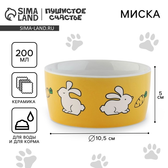 Миска керамическая «Пушистый кролик», 200 мл, для грызунов
