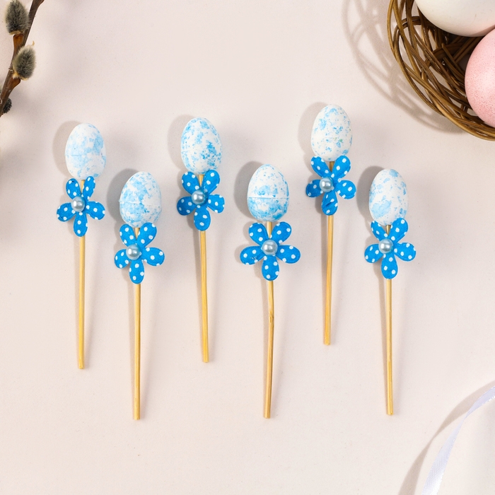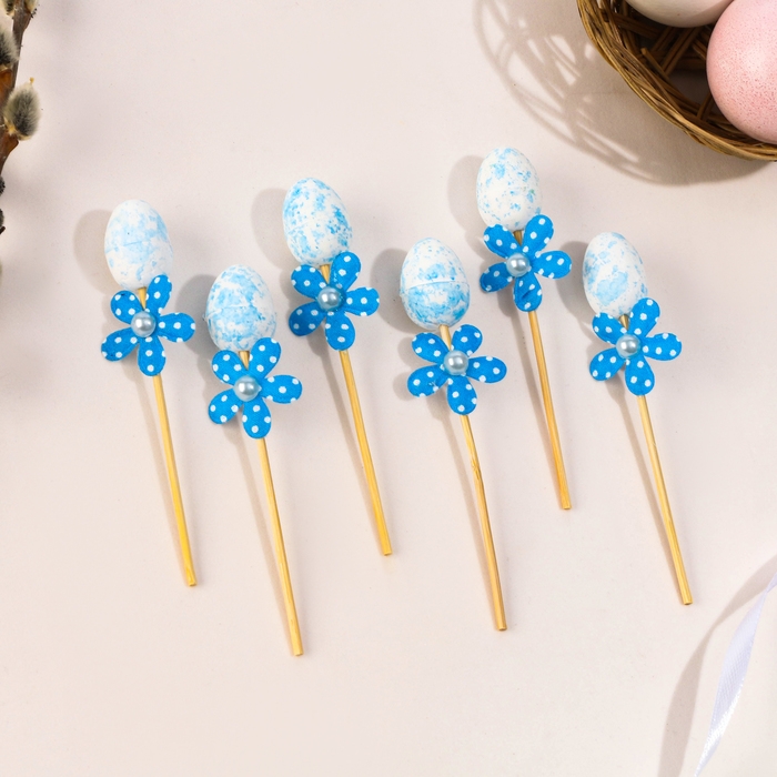 Шпажки яйцо цветочек синий, набор 6 шт.