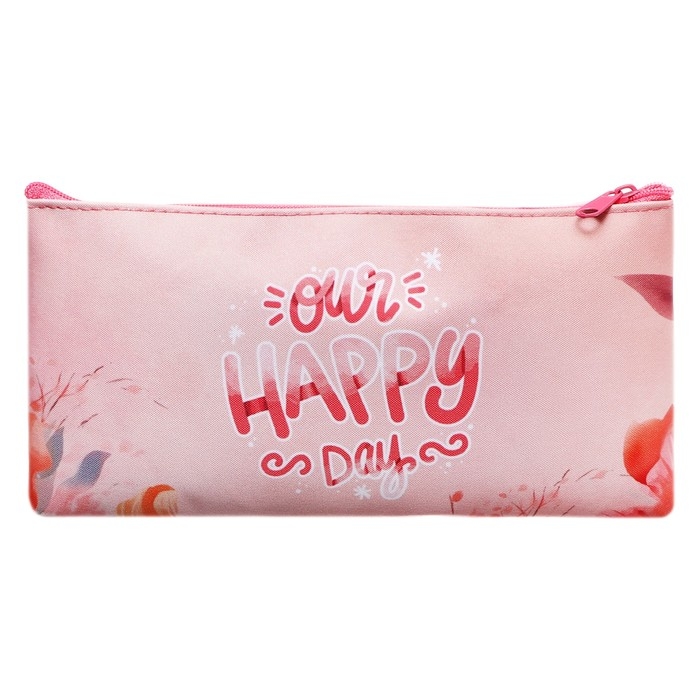 Пенал мягкий 1 отделение, 80 х 190 х 30 мм, кожзам зеркальный "Живи, наслаждайся, люби" розовый