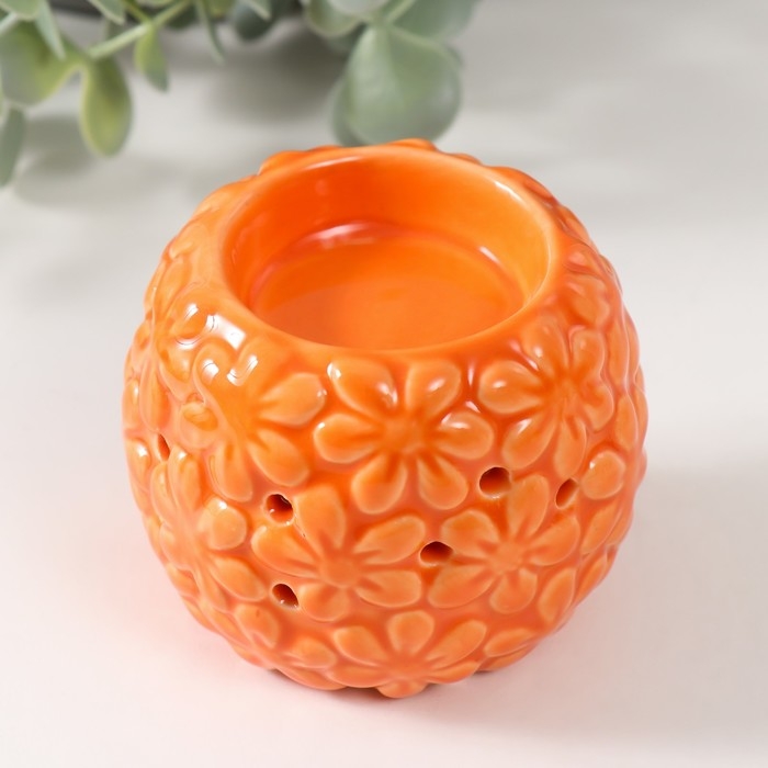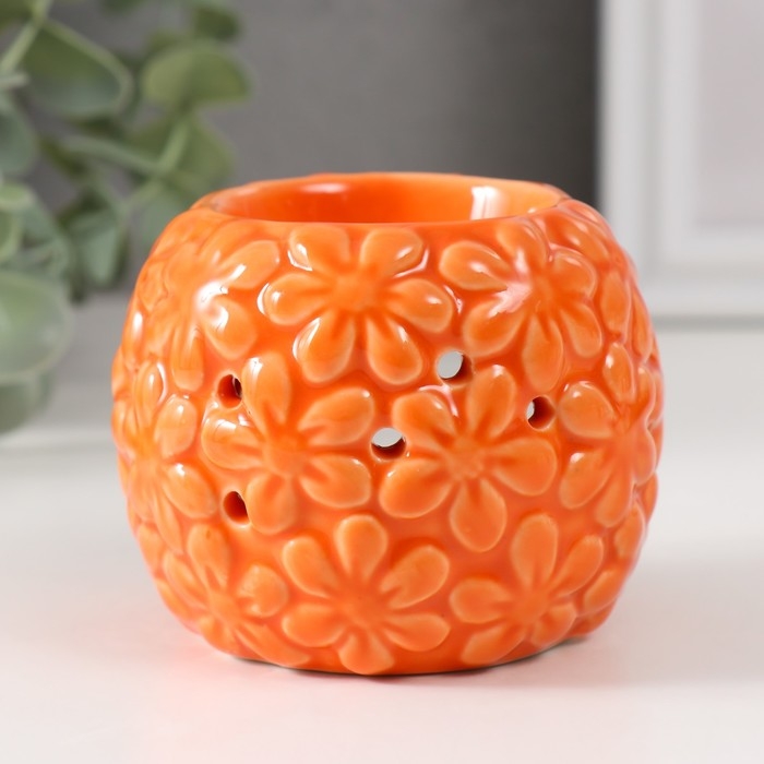 Аромалампа керамика "Цветочки" оранжевая 7,5х7,5х7,5 см