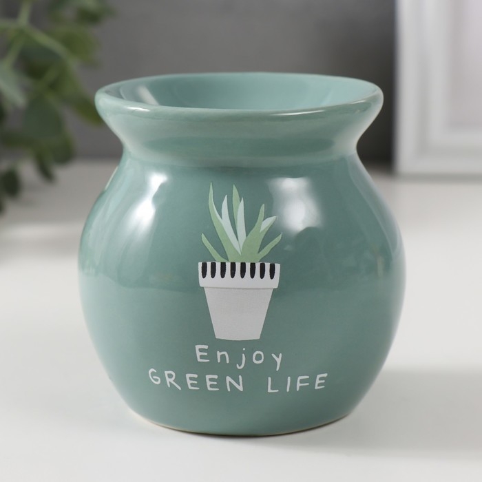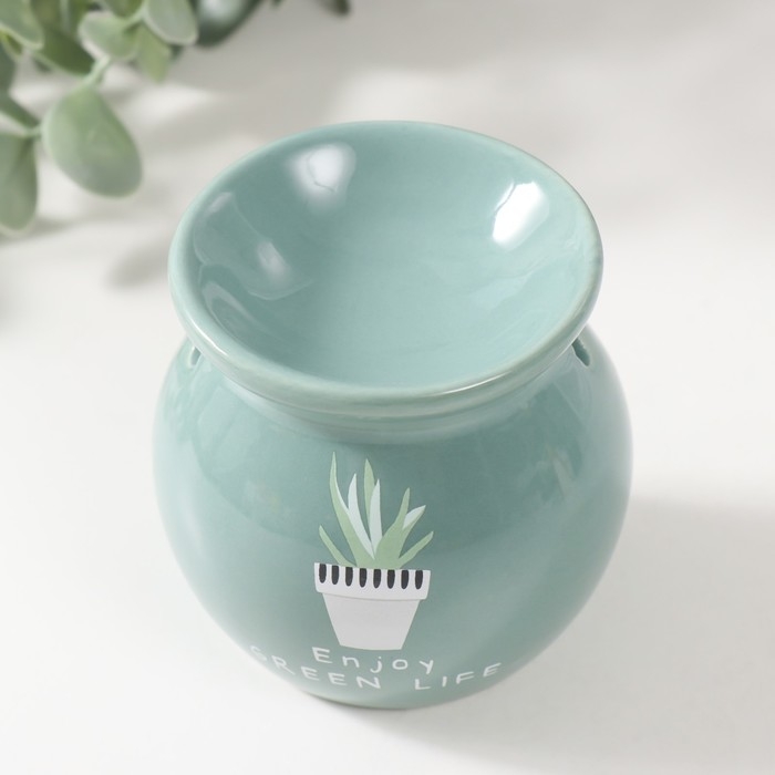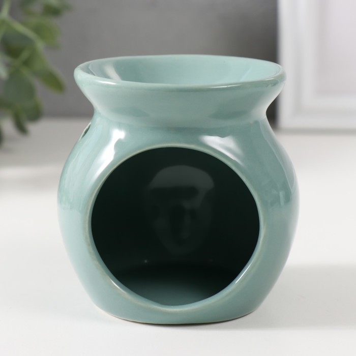 Аромалампа керамика "Растение в горшке" бирюзовая 7,2х7,2х7,8 см