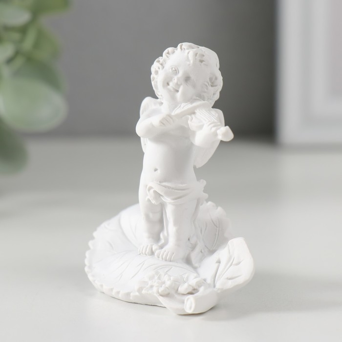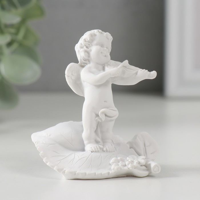Сувенир полистоун "Белоснежный ангел со скрипкой на листике" 6,2х6,4х3,3 см