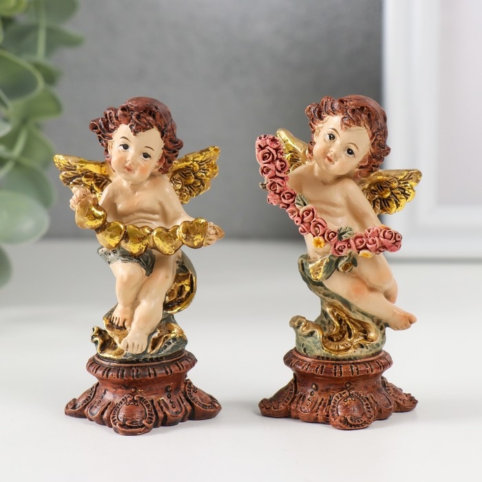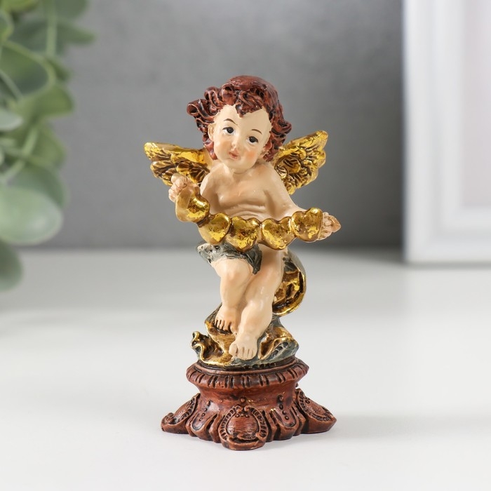 Сувенир полистоун "Ангел на колонне с сердцами/цветами" МИКС 8,5х4х3,3 см
