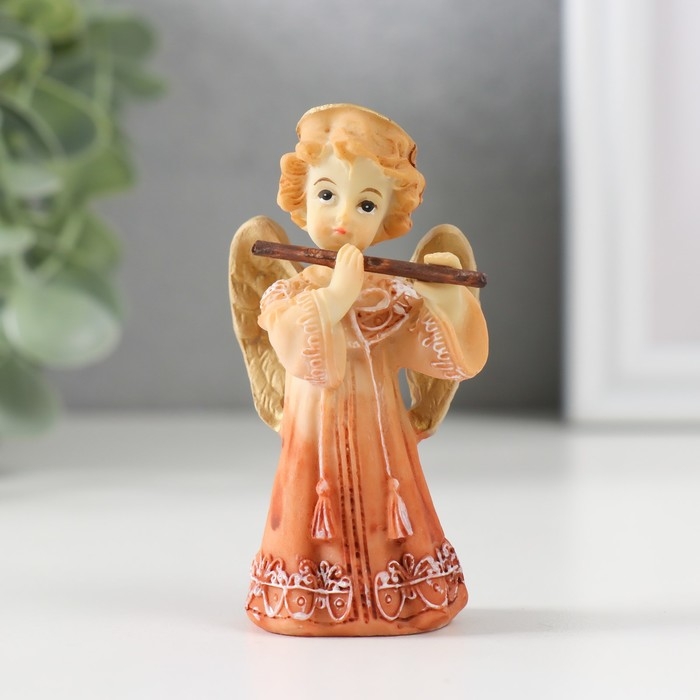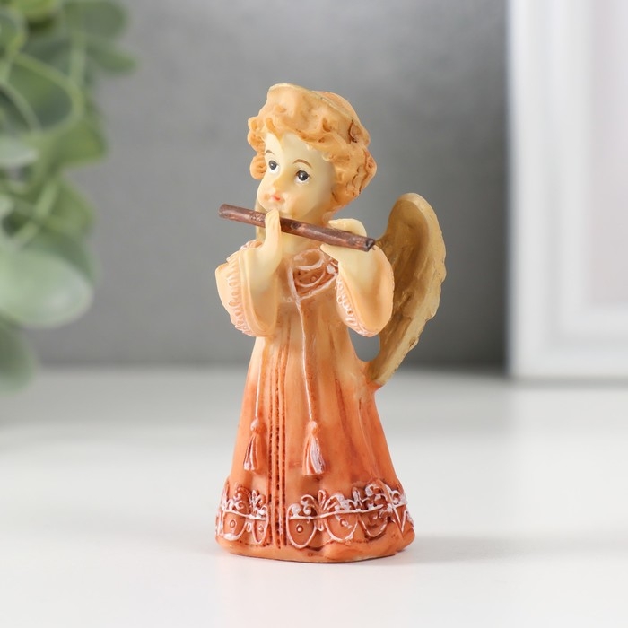 Сувенир полистоун "Ангел в платье с флейтой" 8х4,3х3 см