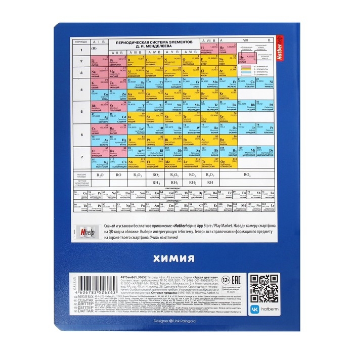 Тетрадь предметная "Яркая цветная", 48 листов в клетку "Химия", обложка мелованный картон, выборочный лак, со справочным материалом