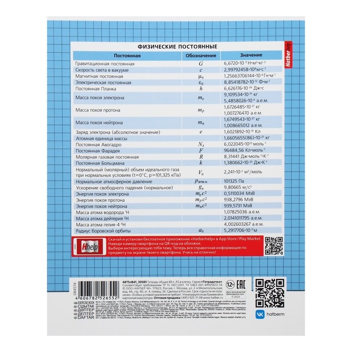 Тетрадь предметная "Тетрадочка", 48 листов в клетку "Физика", обложка мелованный картон, выборочный лак, со справочным материалом