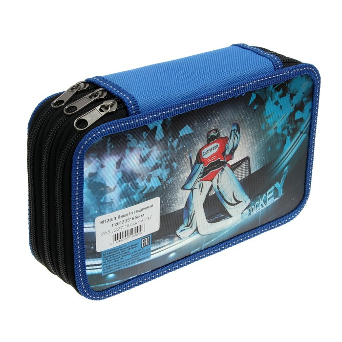 Пенал для школьных канцелярских принадлежностей с 3-мя отделениями. Увеличенный размер 125 х 205 х 55 мм. (помещается карандаш с резинкой). Идеальное решение для первоклассника. Удобные молнии с трех сторон с металлическим бегунком, прочные резинки для предметов. Внутри пенала - цветная печать. Вмещает до 48 предметов. Материал снаружи - картон с цветной печатью с эффектом МЕТАЛЛ. Конструкция отличается износостойкостью и прочностью, поможет защитить канцелярские принадлежности от повреждений. Внутри пенала прочно пришиты резинки. Внутренняя часть пенала выполнена из картона с ламинацией. Поставляется без наполнения.