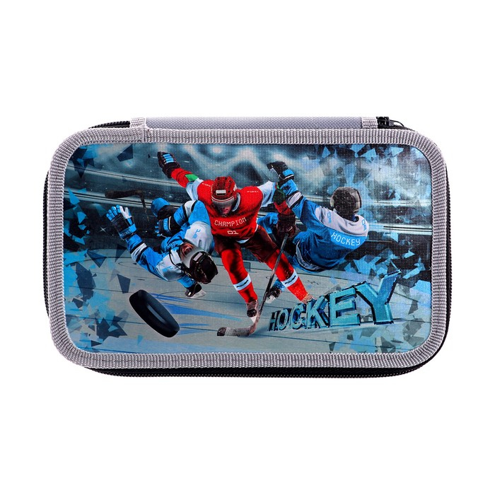 Пенал 3 секции, 125 х 205 х 55 мм, Calligrata 8П26/3 "Хоккеисты" (с эффектом металлика) ,ламинированный картон