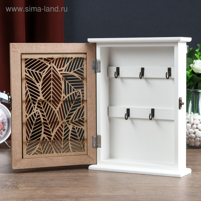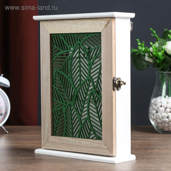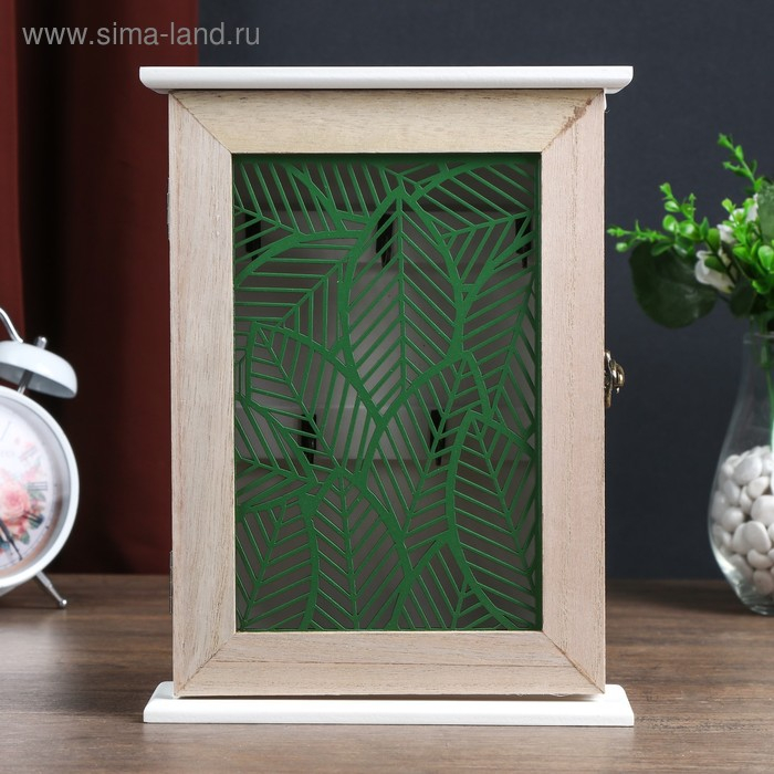 Ключница дерево 5 крючков "Зелёные листья" 25,5х19х6 см