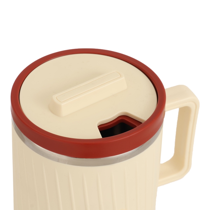 Термокружка для кофе и чая идеальна для офиса, длительных прогулок и детям в школу. Благодаря специальному покрытию надежно лежит в руке.