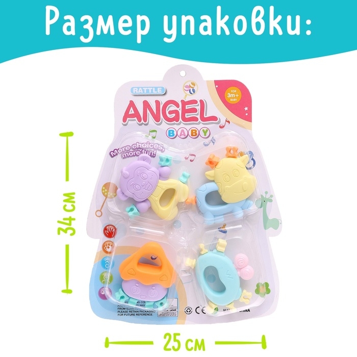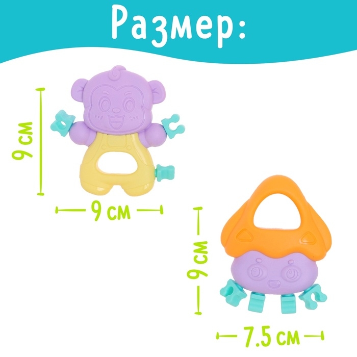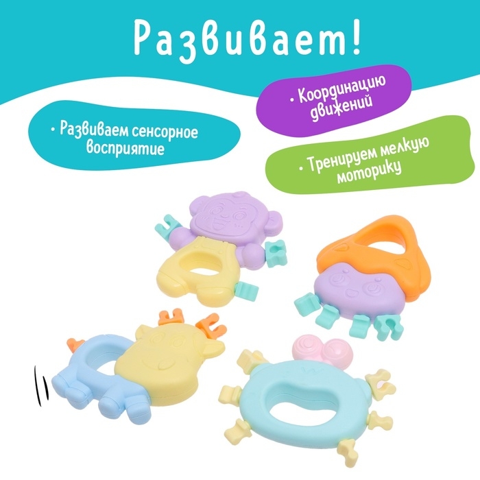 Набор прорезывателей для зубов «Забавные зверята», 4 шт.