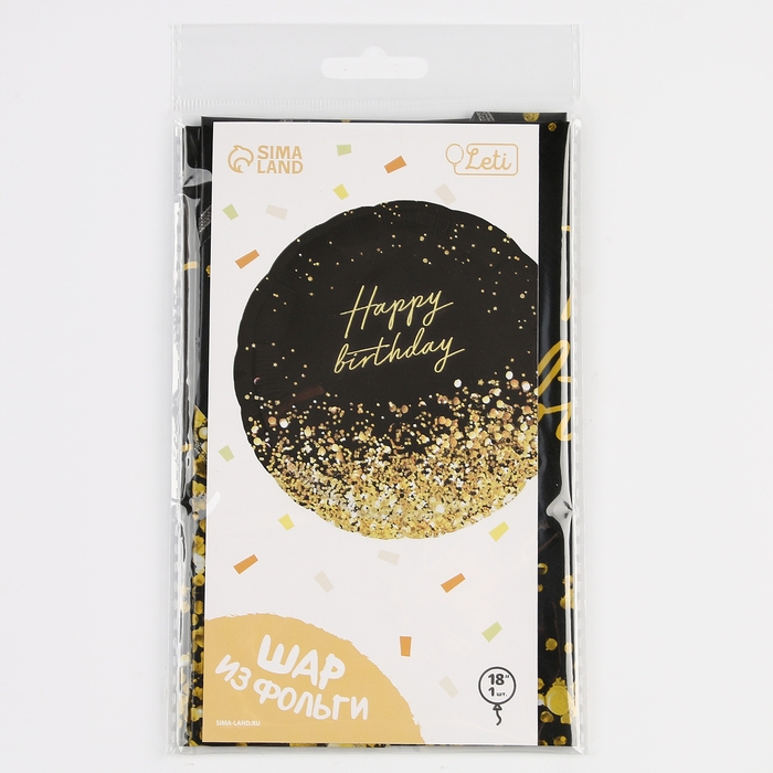 Воздушный шар фольгированный 18" «Happy Birthday» золото, круг, с подложкой