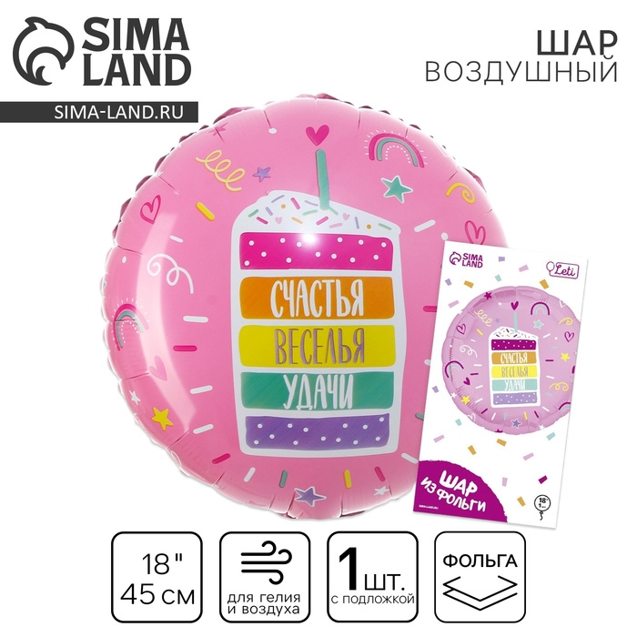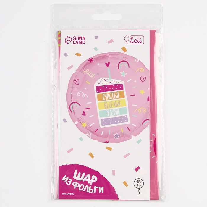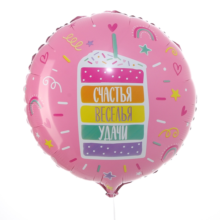 Воздушный шар фольгированный 18" «Счастья, веселья, удачи», круг, с подложкой