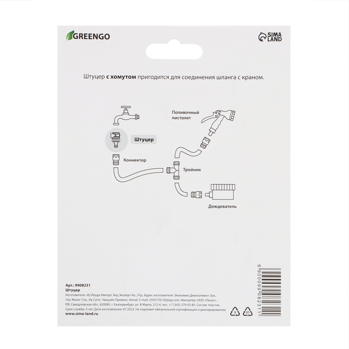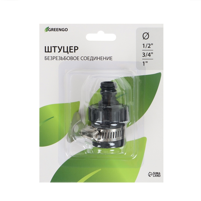 Штуцер, безрезьбовое крепление 3/4" (19 мм), быстросъёмное соединение, ABS-пластик, Greengo