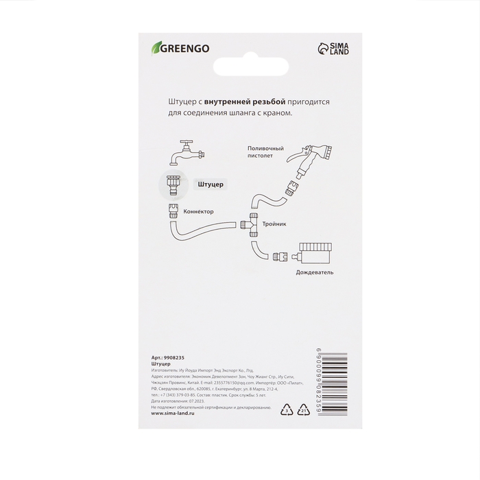 Штуцер, внутренняя резьба 1/2"–3/4"–1", быстросъёмное соединение, пластик, Greengo