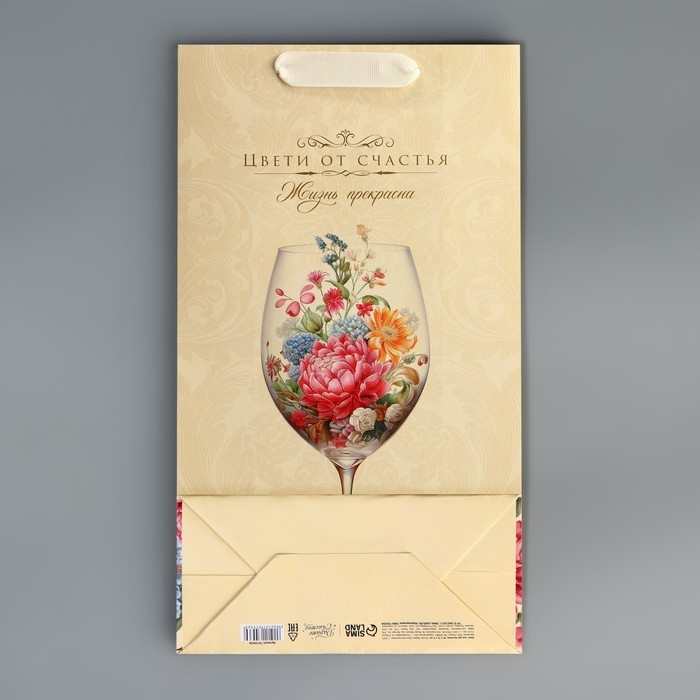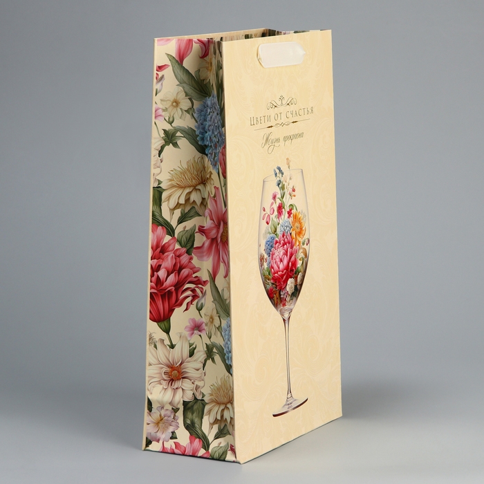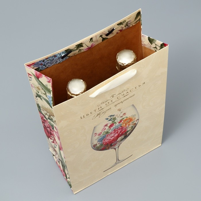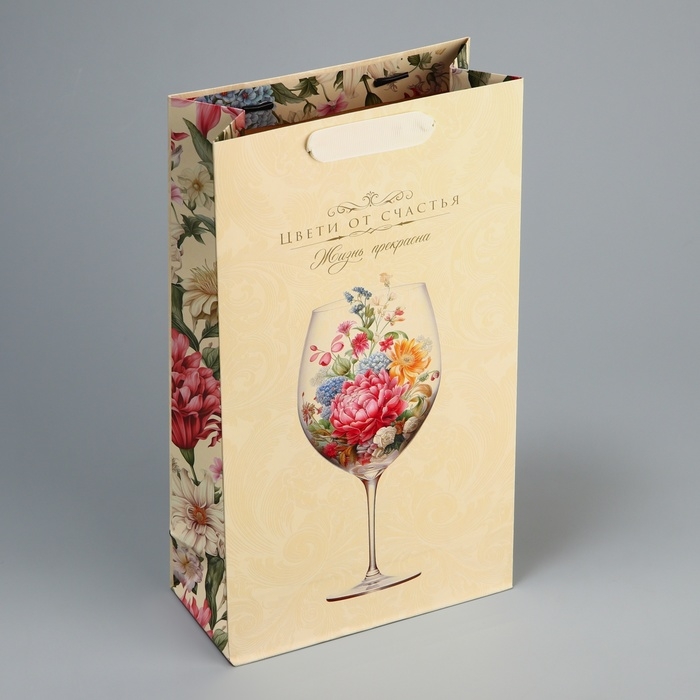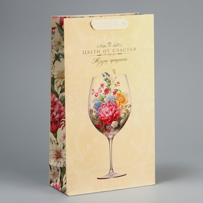 Пакет подарочный под две бутылки, упаковка, «Цвети от счастья», 35 х 20 х 9 см