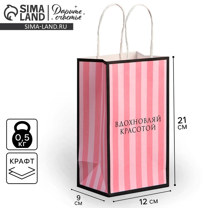 Пакет подарочный крафтовый, упаковка, «Красота», 12 х 21 х 9 см