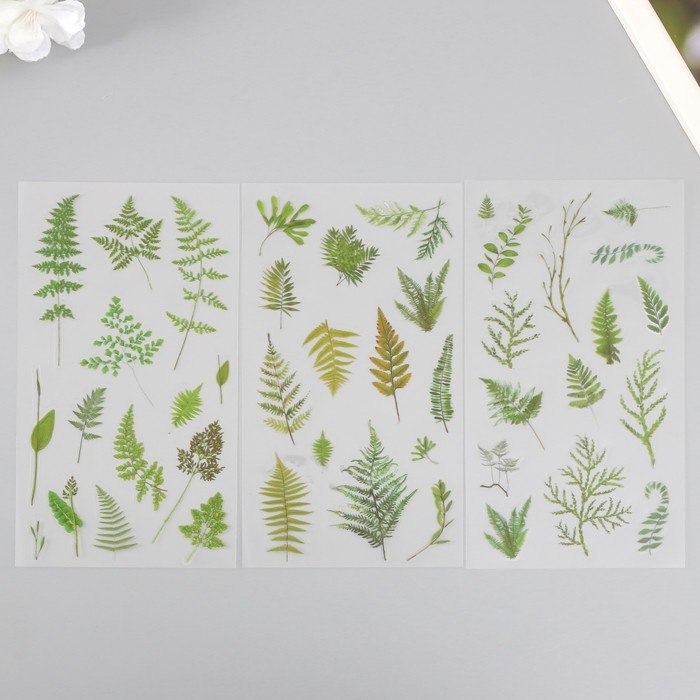 Наклейки пластик "Тропические листья" набор 6 листов 10х18 см