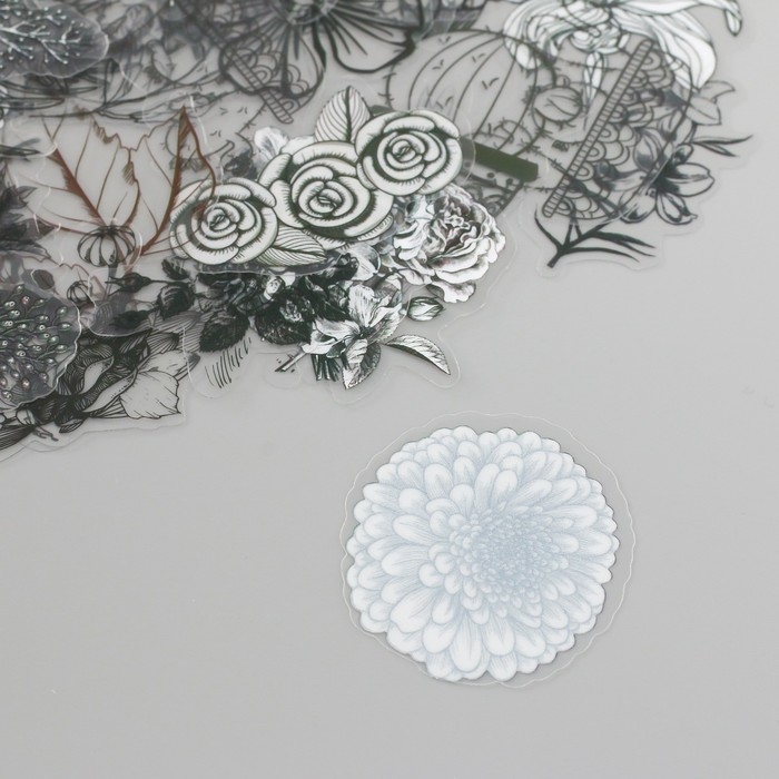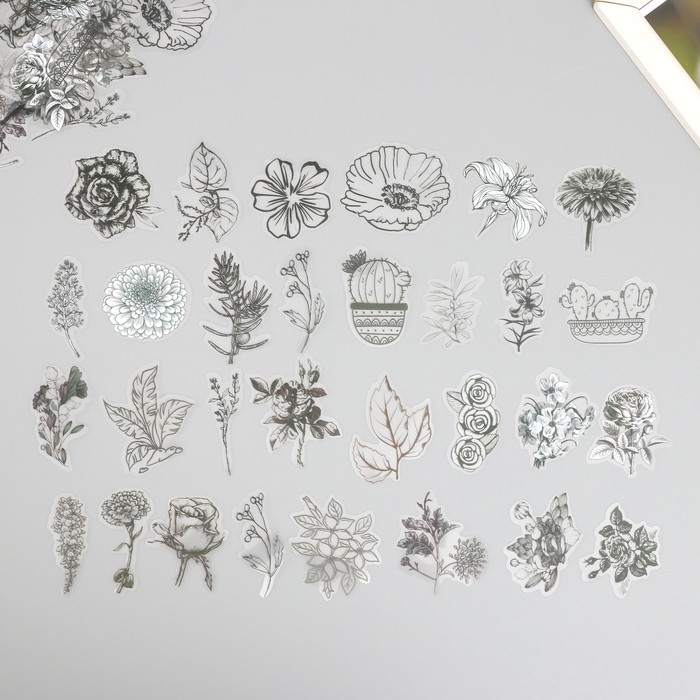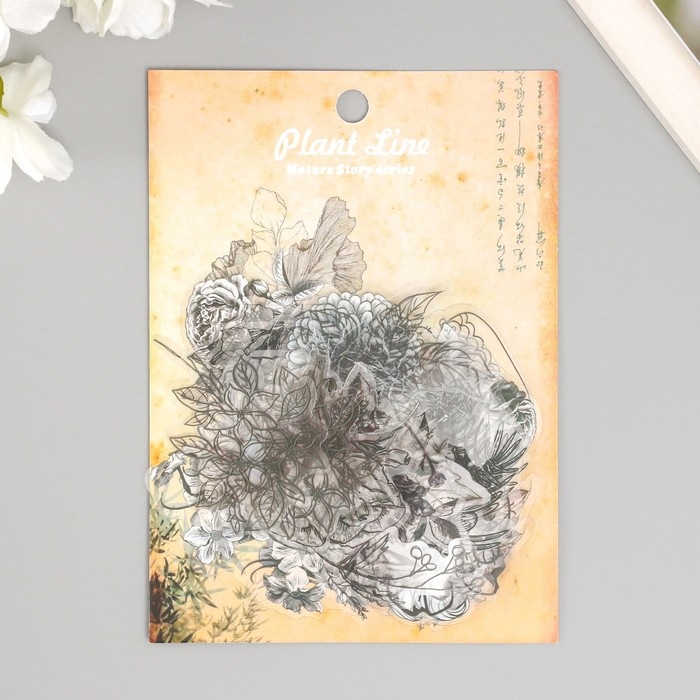 Наклейки для творчества пластик PVC "Эскизы растений" набор 60 шт 10х14 см