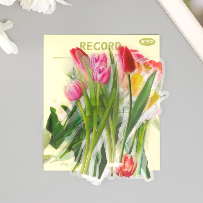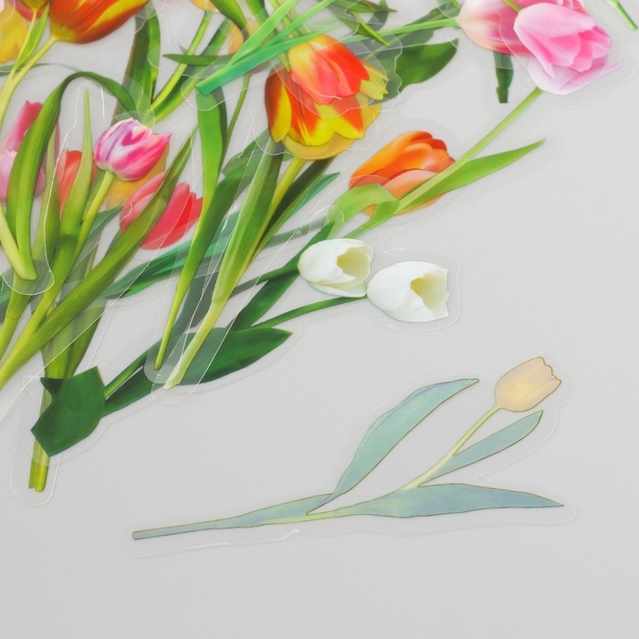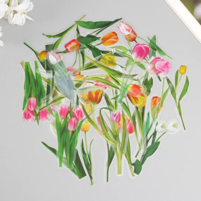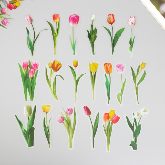 Наклейки для творчества пластик PVC "Тюльпаны" набор 40 шт 9х10.5 см