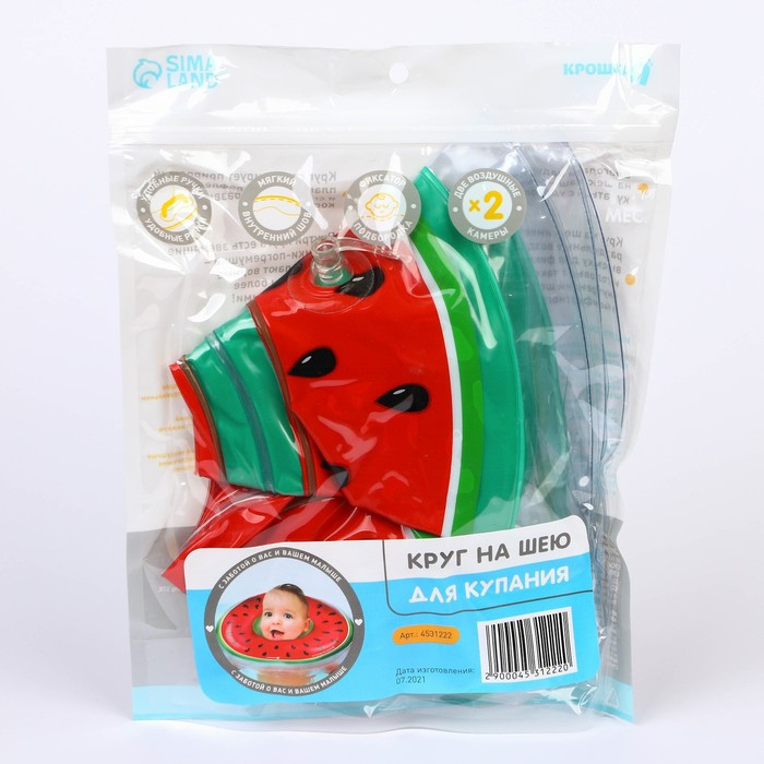 Круг для плавания новорожденных на шею «Арбузик», надувной, с ручками, Крошка Я