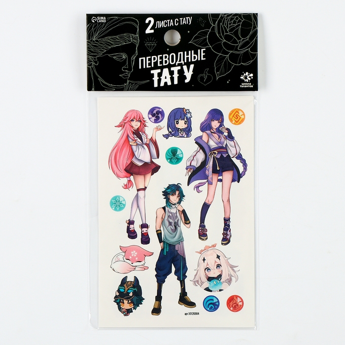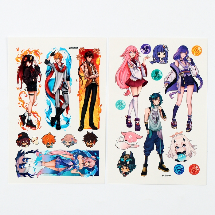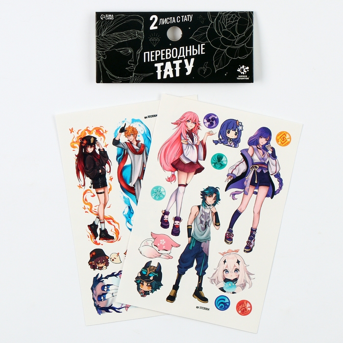 В комплекте 2 листа тату с аниме-персонажами.