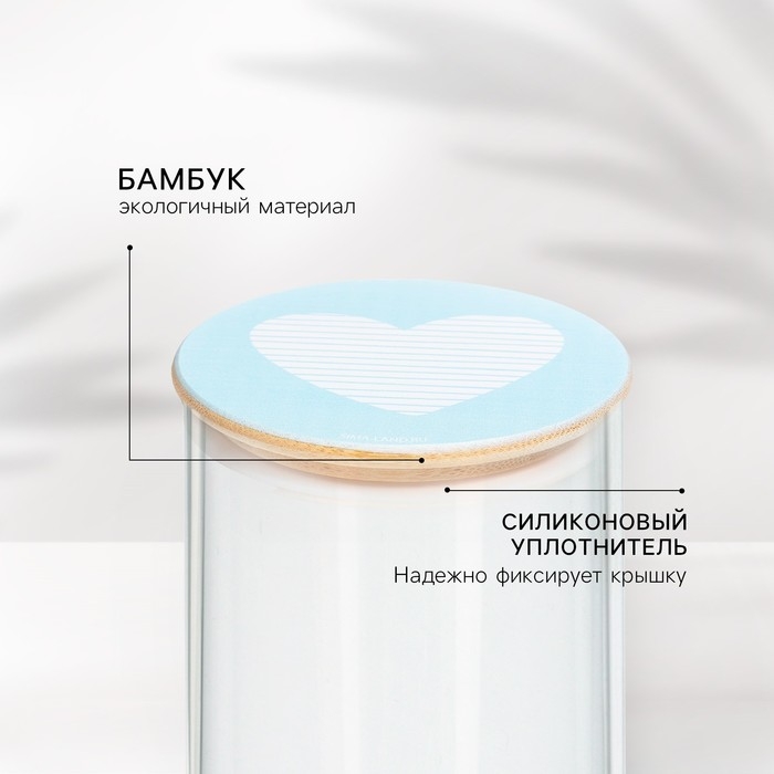 Крышка для банок/чайников/кружек/ёмкостей, бамбук «Любовь», 8.5 см., силиконовая прокладка