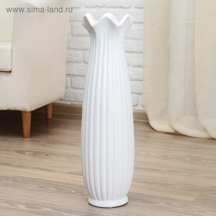 Ваза керамика напольная "Геометрия" бутон, 16х60 см, белый