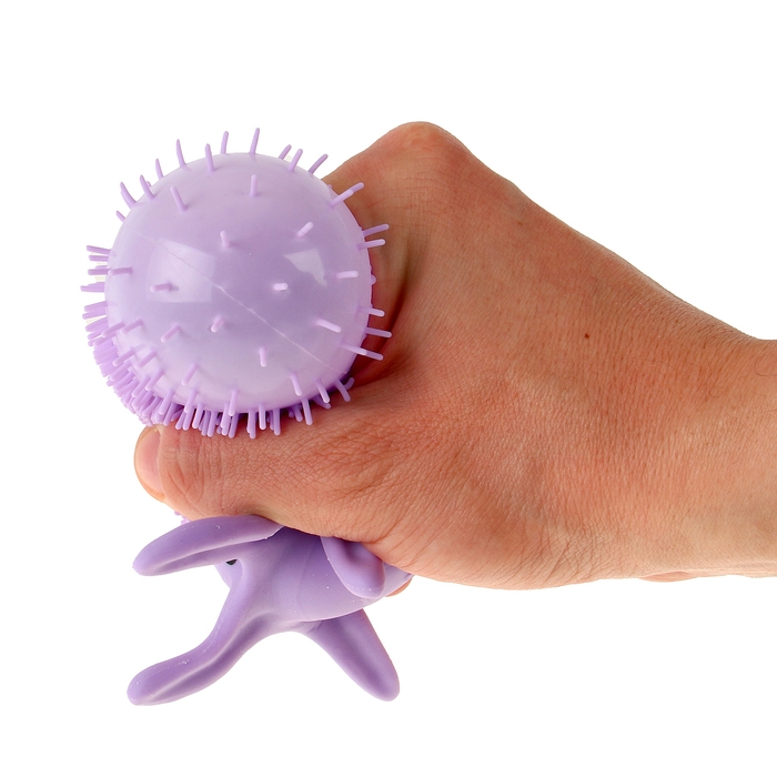 - При нажатии на игрушку снижается уровень стресса и развивается сила рук