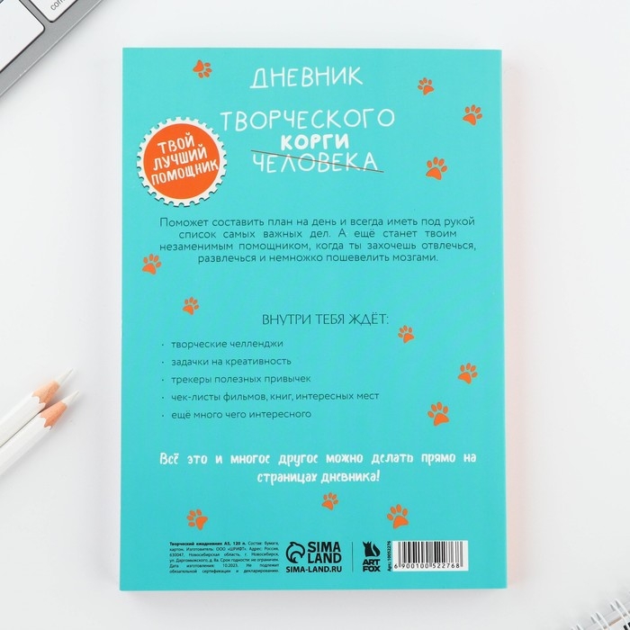 Дневник творческого человека А5, 120 л. «Корги»