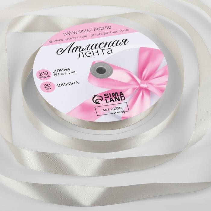 Лента атласная, 20 мм × 23 ± 1 м, цвет белый №01