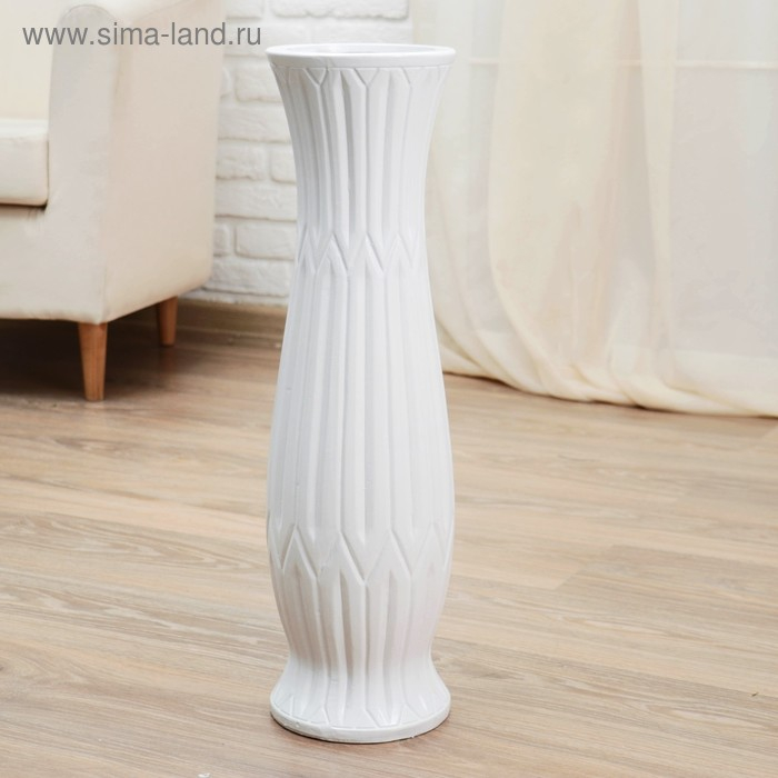 Ваза керамика напольная "Данте" геометрия, талия, 16х60 см, белый