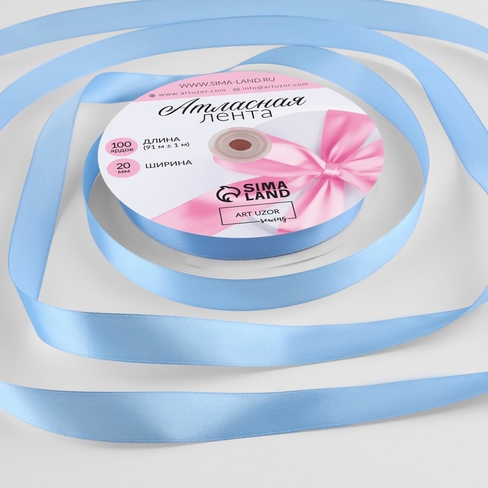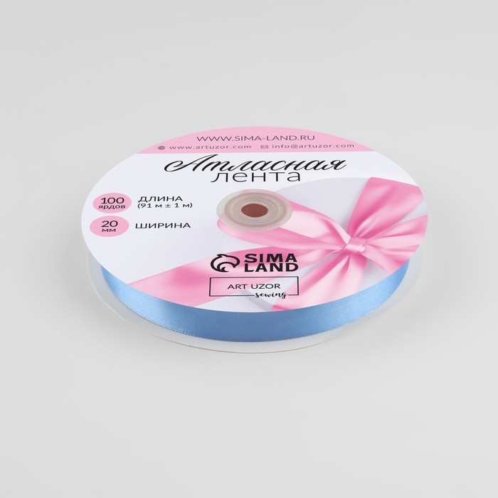 Лента атласная, 20 мм × 91 ± 1 м, цвет небесно-голубой №278
