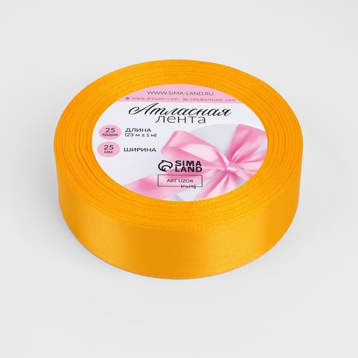Лента атласная, 25 мм × 23 ± 1 м, цвет жёлто-оранжевый №17