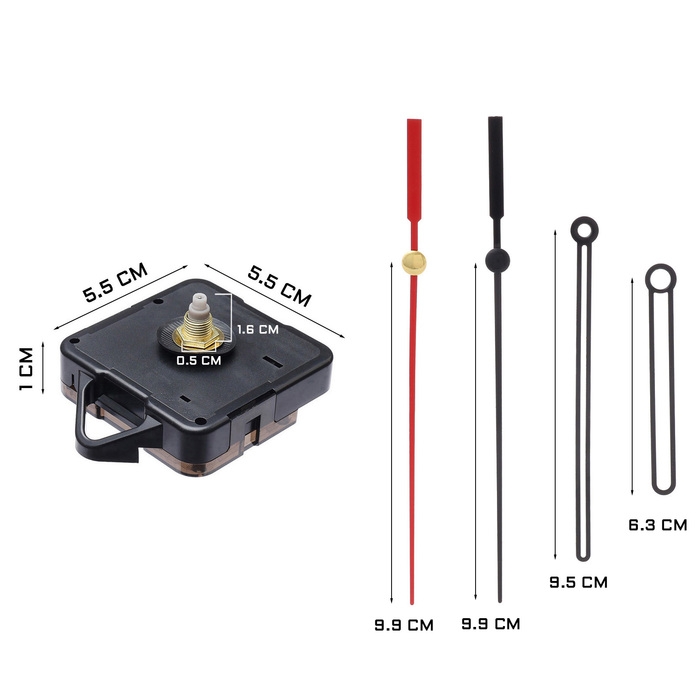 Часовой механизм со стрелками «Соломон-36», плавный ход, шток 16 мм, стрелки 63/95/99 мм